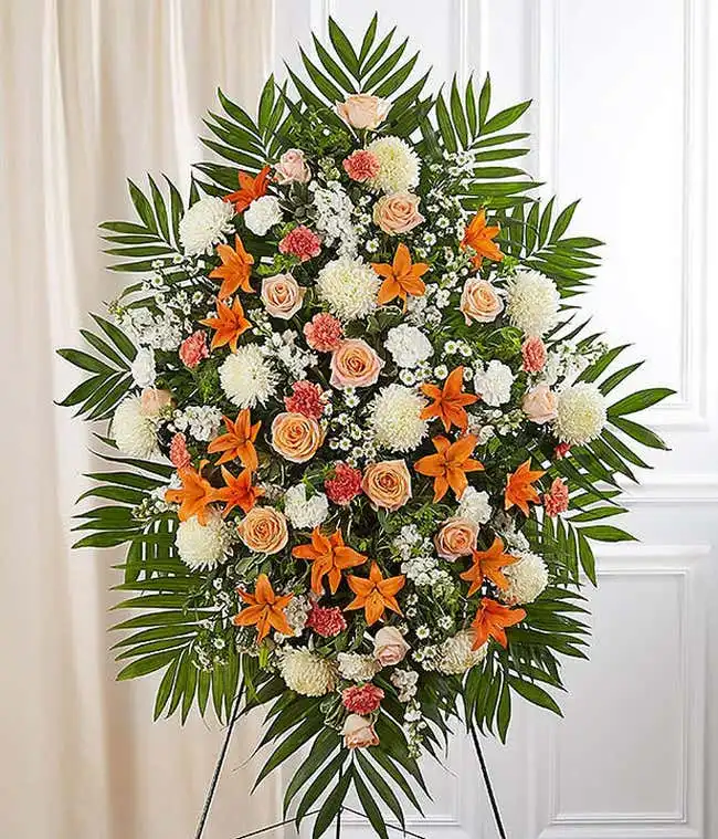 Peach, Orange & White Sympathy Standing Spray